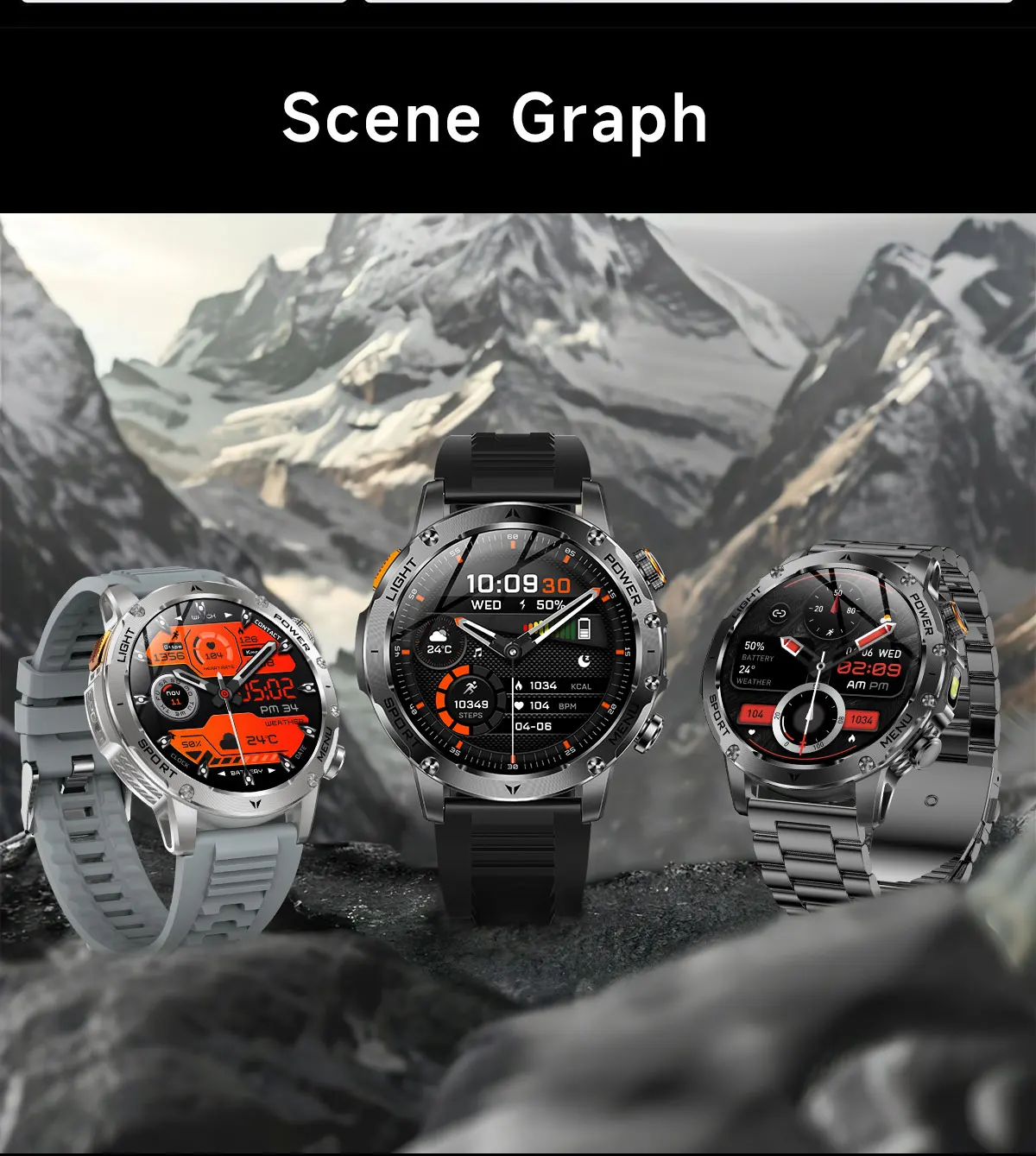 2025 New Military T-Rex 3 Ultra 1000mAh Battery Smart Watch with Flashlight