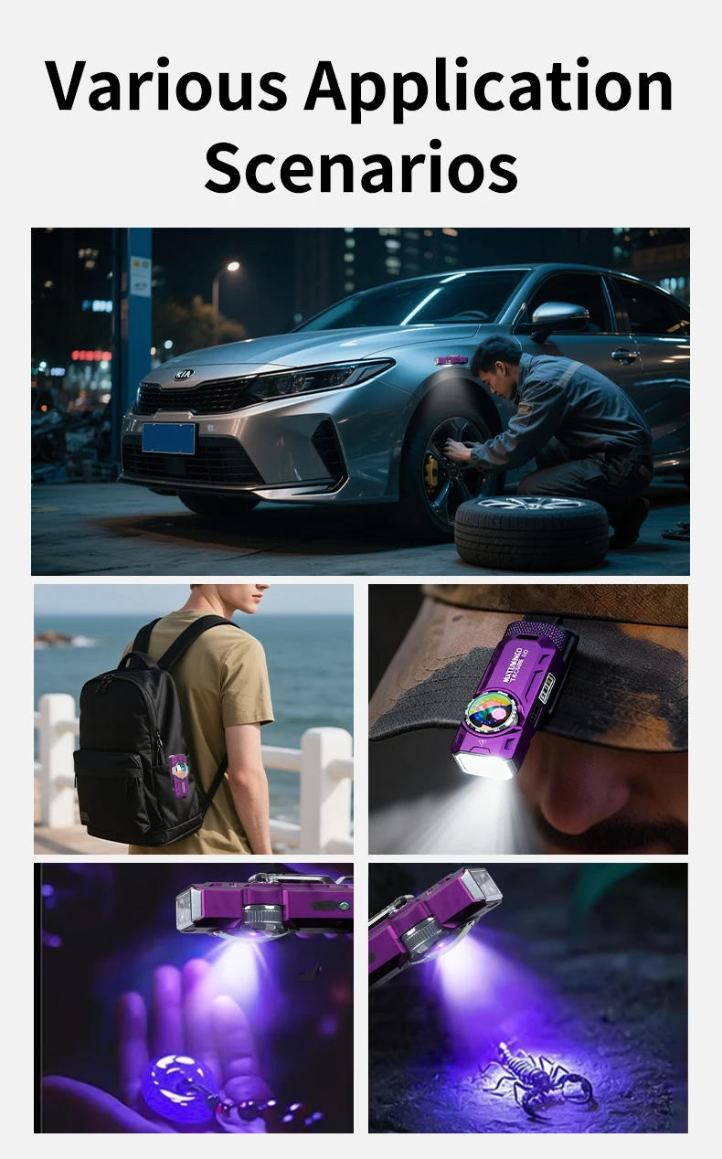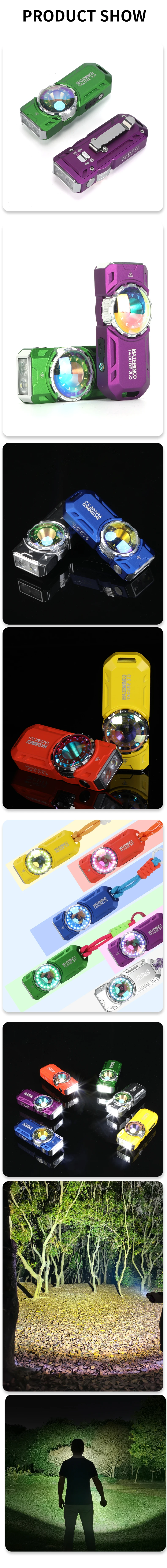 3.0 EDC RGB 1550lm Type-C Rechargeable Long Throw UV Tactical LED Torch Flashlight