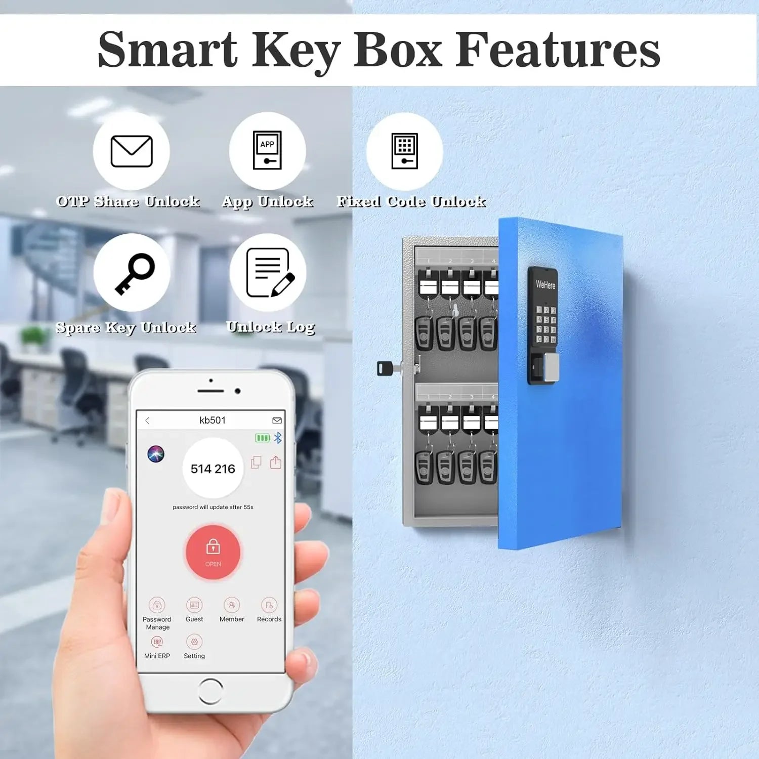 WeHere 32 Key Lock Box, Intelligent Wall Mounted Key Storage Cabinet,OTP/APP Bluetooth/fixed Code Unlocking Key Management Safe