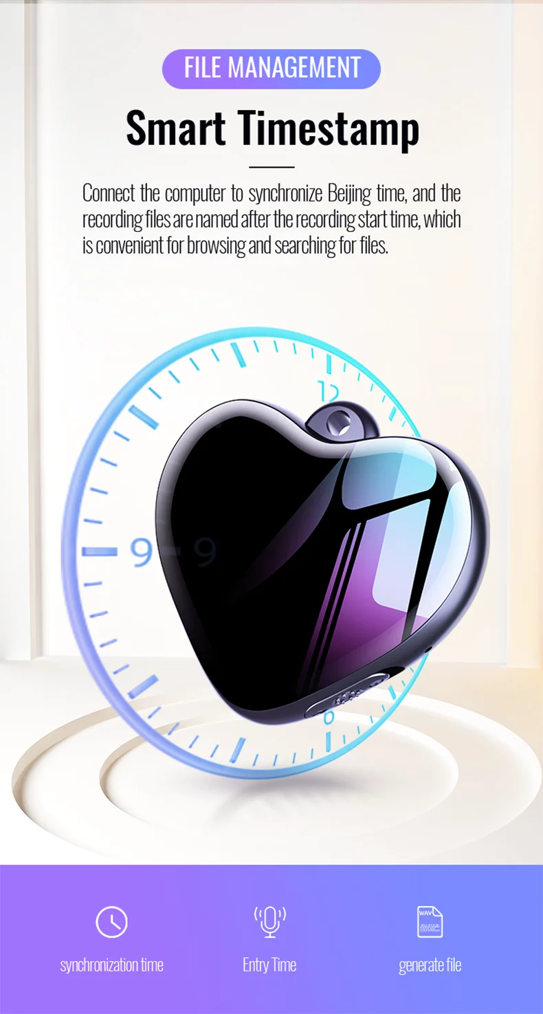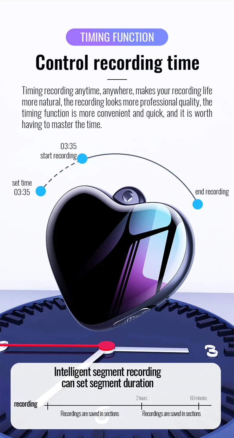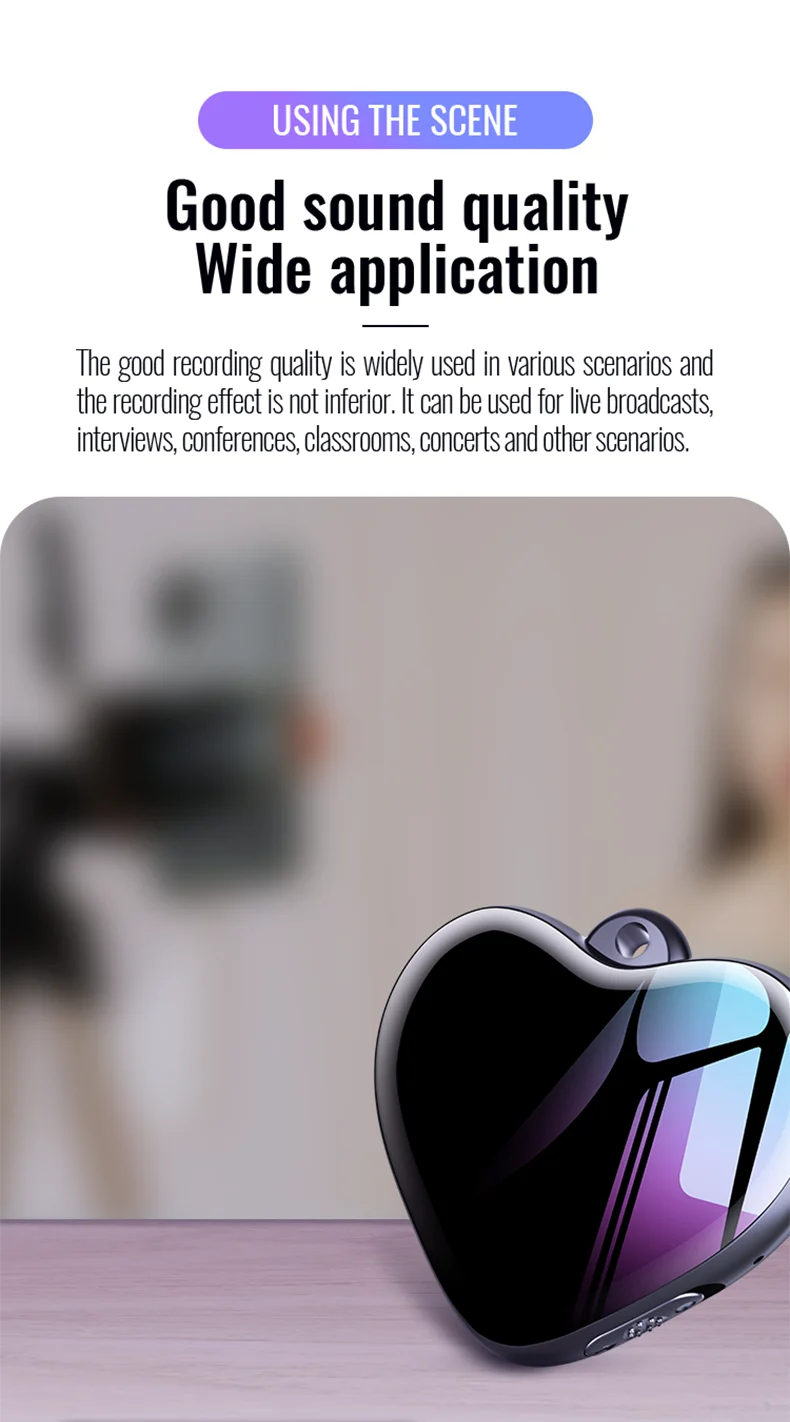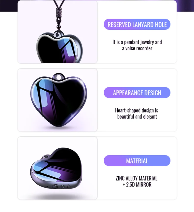 | Mini Voice Recorder Heart Shape Voice Activated Recorder Timing Micro Recording Pendant for Lectures Meetings Interviews