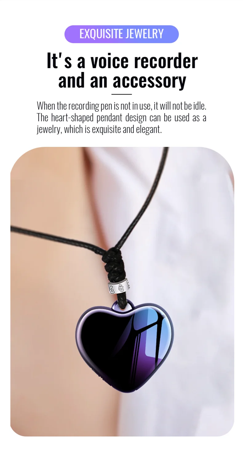 Heart Shape Voice Activated Recorder Timing Micro Recording Pendant Mini Voice Recorder HD Noise Reduction Audio Sound Recorder