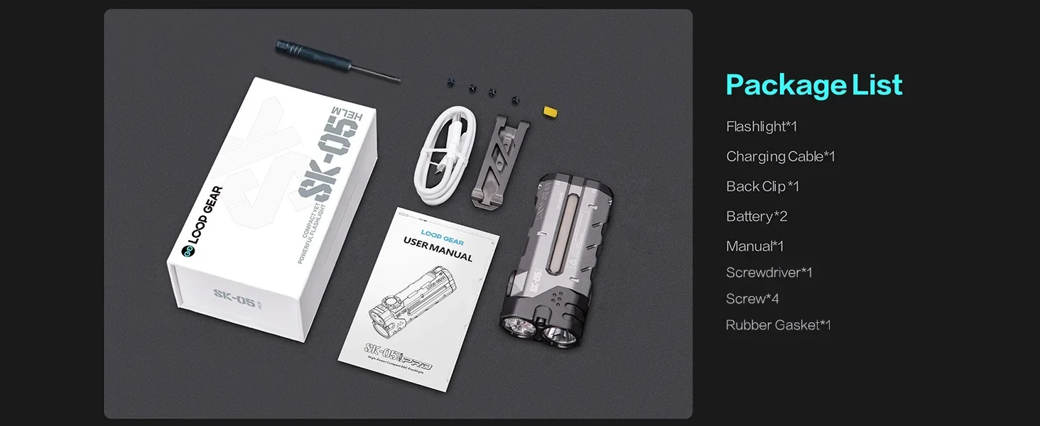2.The LOOP GEAR SK05 is more than just a flashlight; it's a multi-functional tool designed to deliver exceptional lighting performance in any situation. Its combination of powerful outputs, robust construction, and extended runtime ensures it meets the demands of professionals and outdoor enthusiasts alike. Whether navigating through dense forests, working in challenging environments, or simply needing a dependable light source, the SK05 stands out as a reliable and indispensable companion.