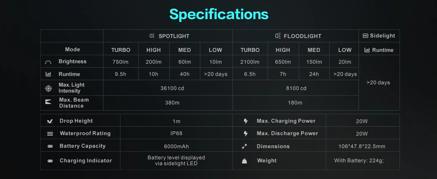 1.The LOOP GEAR SK05 led flashlight is a compact and powerful lighting device designed to cater to a wide range of outdoor and professional needs. Featuring an innovative dual-light source system, this flashlight combines a spotlight and a floodlight to offer unmatched versatility and performance. With a maximum output of 2850lumens, it effectively illuminates large areas while providing a precise beam for long-distance visibility. The SK05 is equipped with an 6000mAh rechargeable battery, ensuring prolonged usage and serving as a reliable power source for extended adventures or critical tasks.