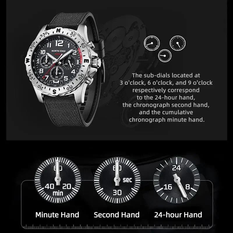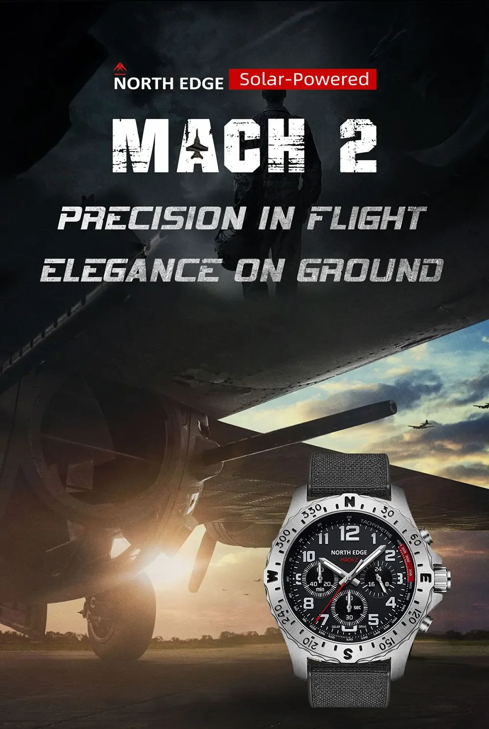 NORTH EDGE 2024 MACH 2 Men's Watches Solar Power 316 stainless steel Case Quartz Watch For Men Pilot Waterproof 50M Stopwatch