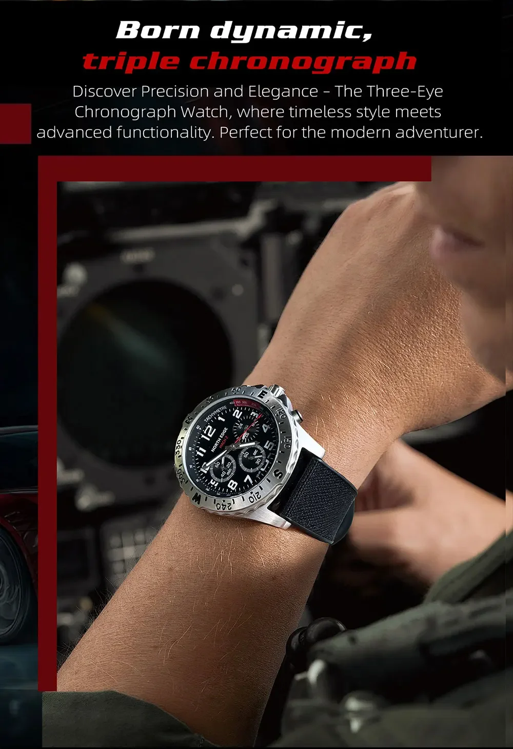 Discover Precision and Elegance -The Three-Eye Chronograph Watch, where timeless style meets advanced functionality. Perfect for the modern adventurer.