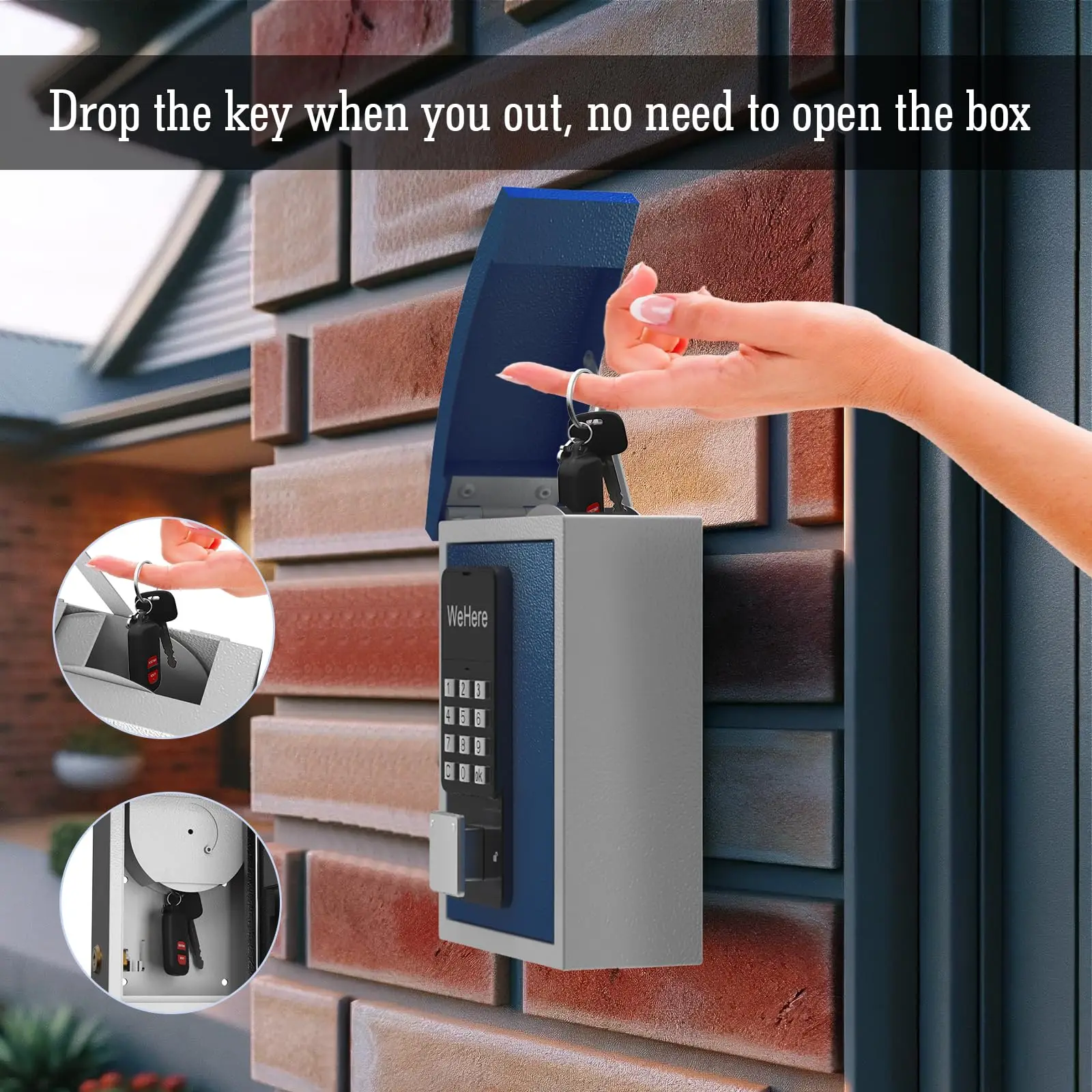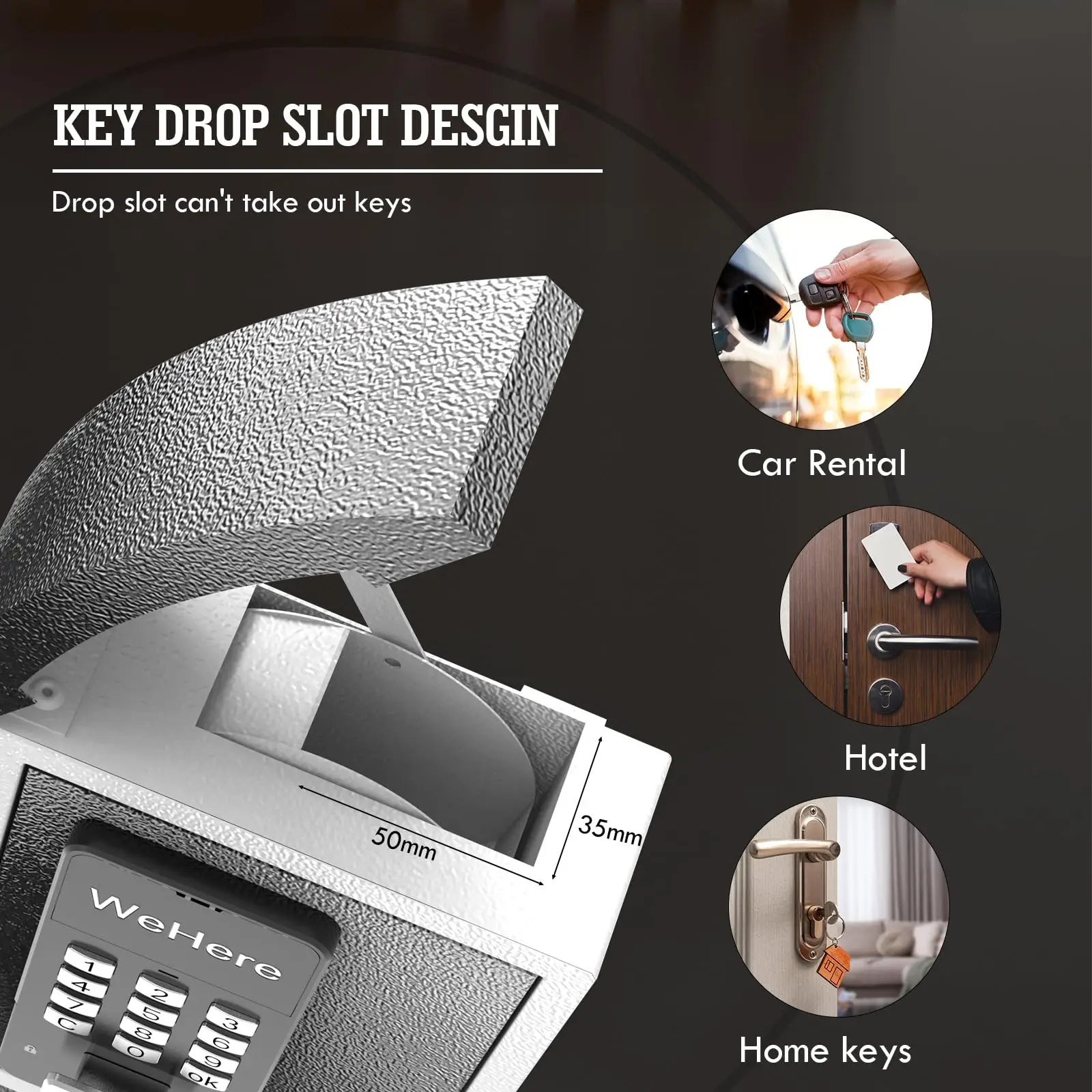 Password Remote Control Key Lock Box Wall Mount with Key Drop Slot Key Storage Box Smart Key Safe OTP/APP Bluetooth/Code Unlock