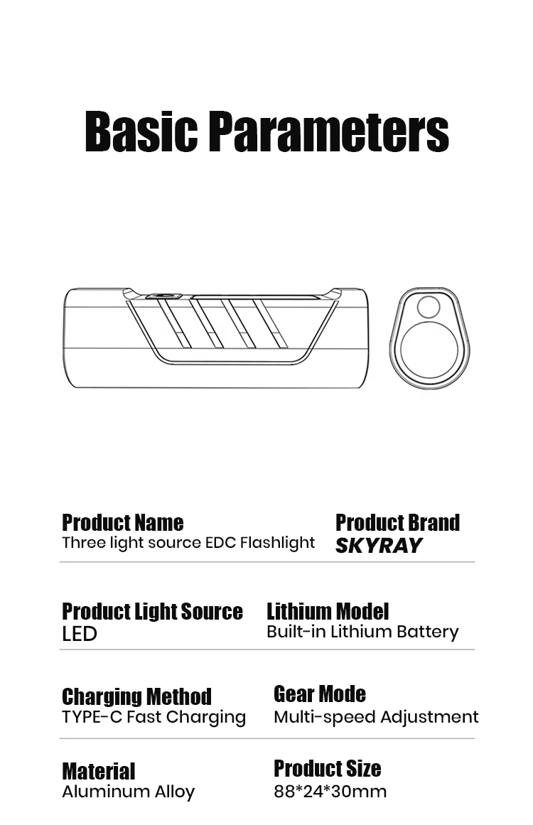 SKYRAY SM55 600Lumen EDC Flashlight USB C Rechargeable Torch