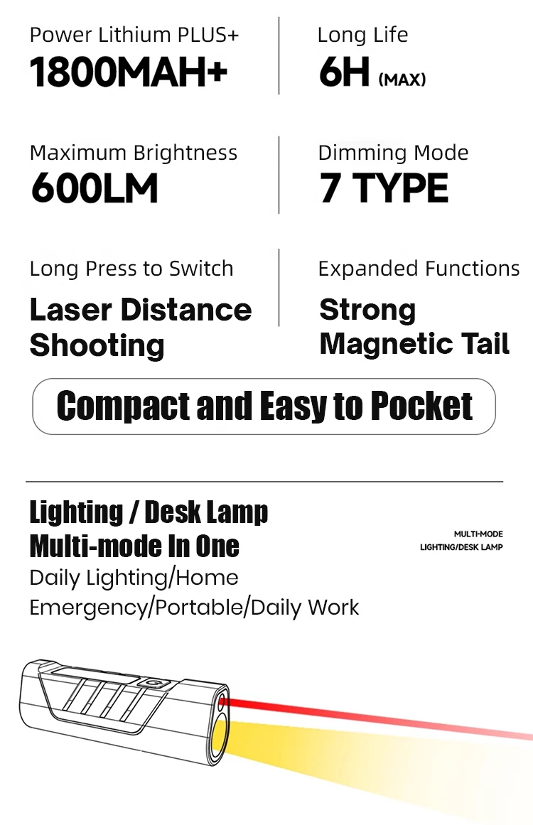 SKYRAY SM55 600Lumen EDC Flashlight 18650 Pocket USB C Rechargeable Torch MINI Led Light with Magnetic for camping night-walking