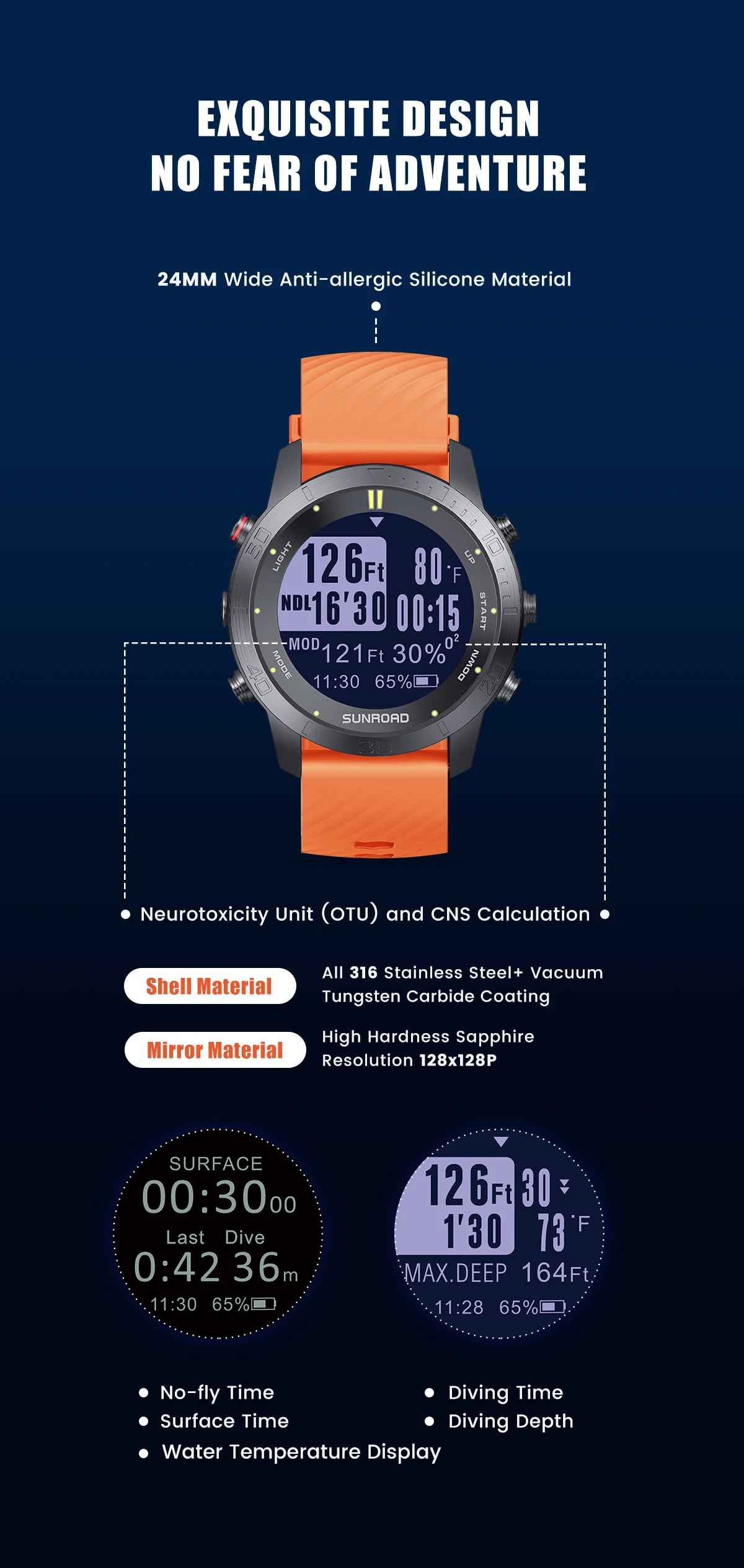 diving depth interval reminder, OTU & CNS alarm