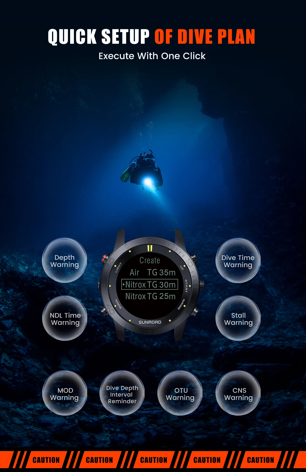 2. Diving alarm: NDL alarm, target depth alarm, diving time alarm, stall warning, MOD warning,