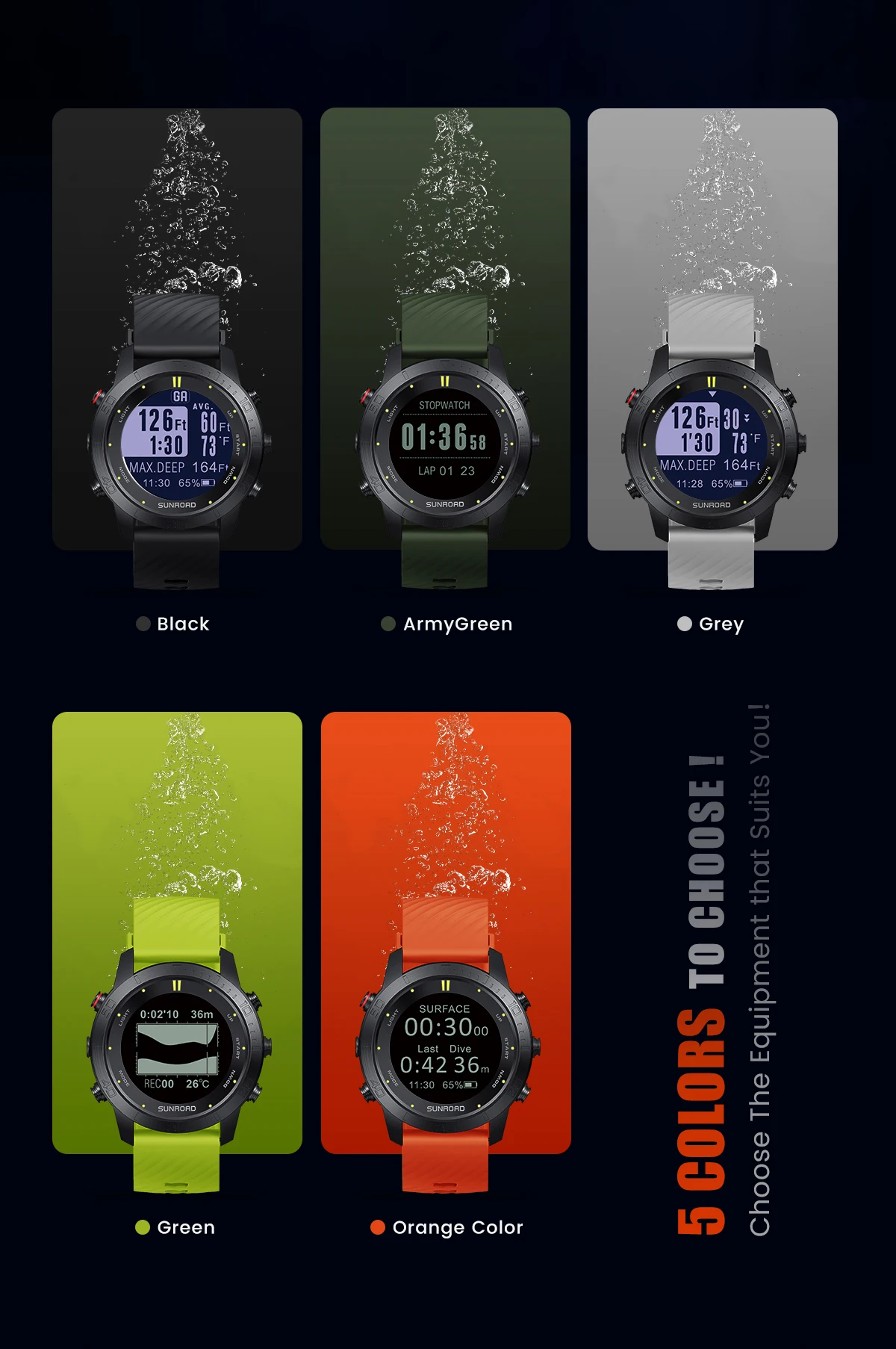 Sunroad D3 Professional Diving Computer Watch Free Scuba 100m Dive Depth