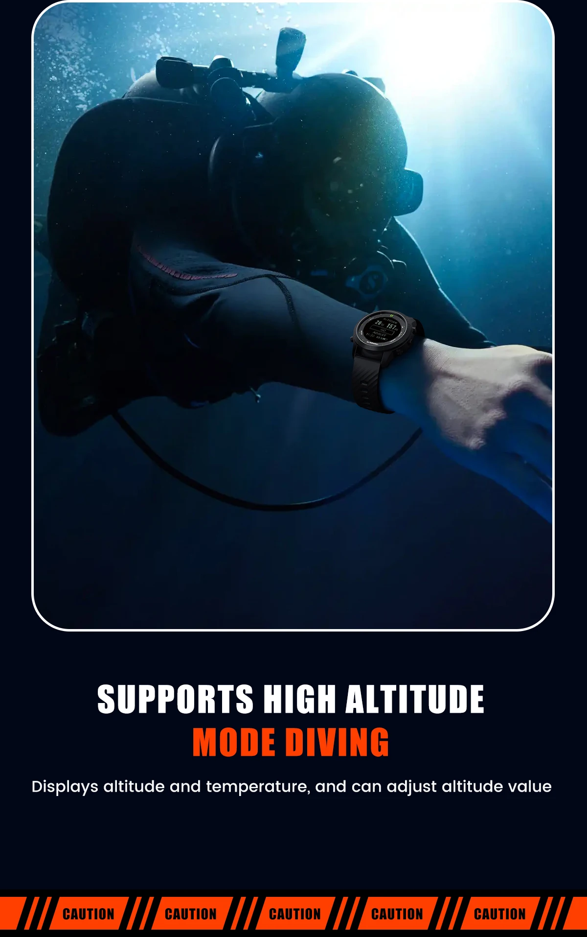5. Support high altitude diving mode, display altitude, temperature. Altitude adjustable