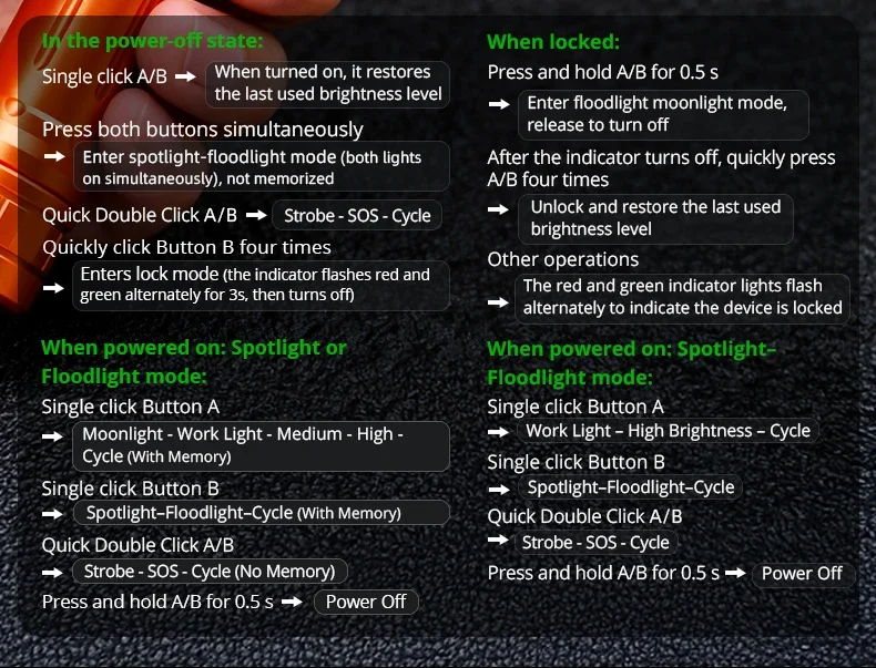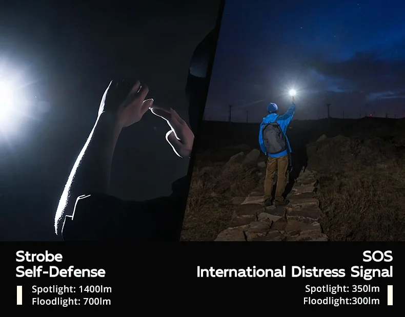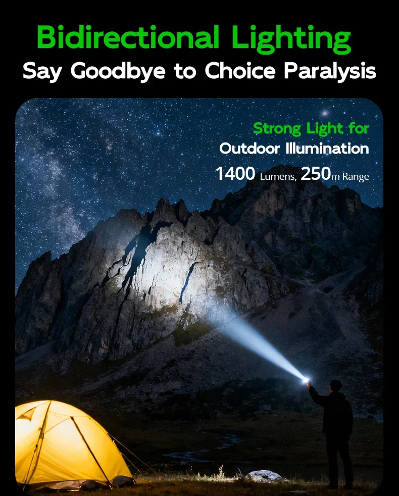Equipped with independent dual-button controls, you can easily switch between multiple lighting modes including high, low, strobe, and SOS. The rechargeable lithium battery supports Type-C fast charging, offering a runtime of 2-12 hours.
