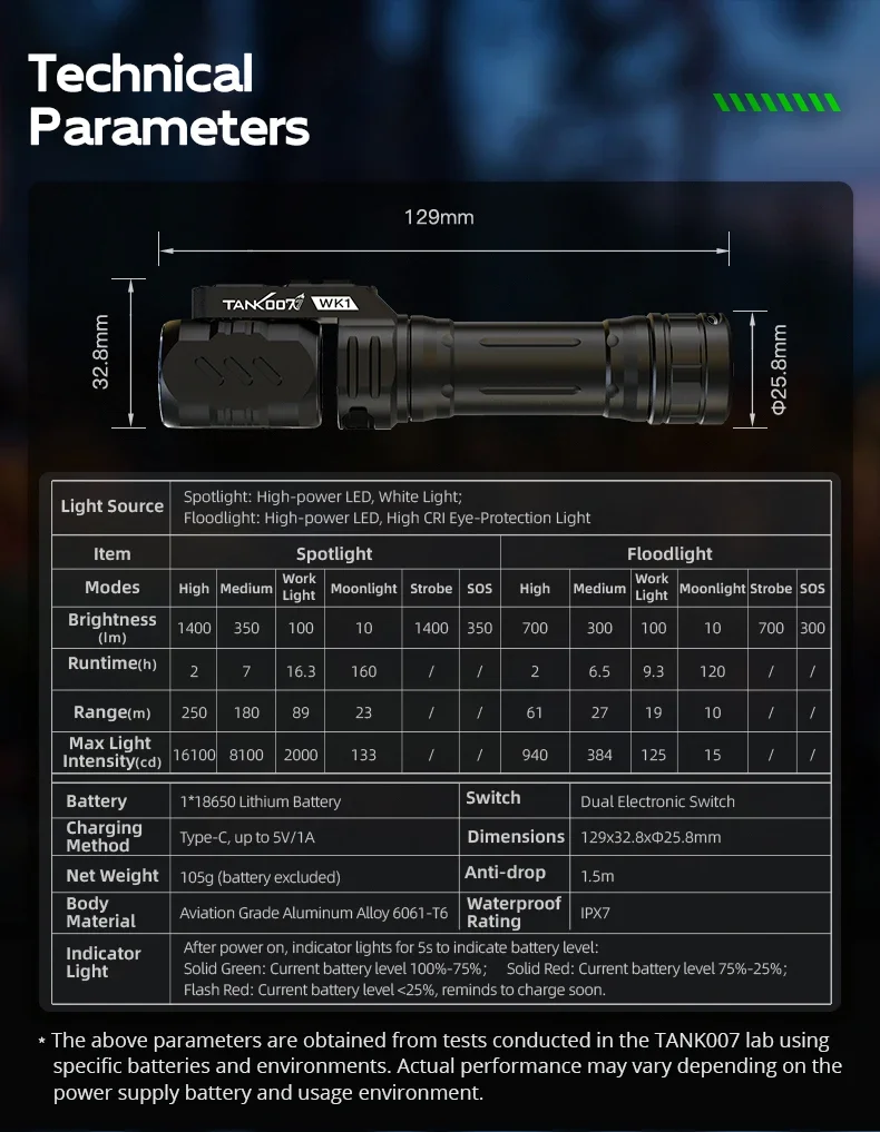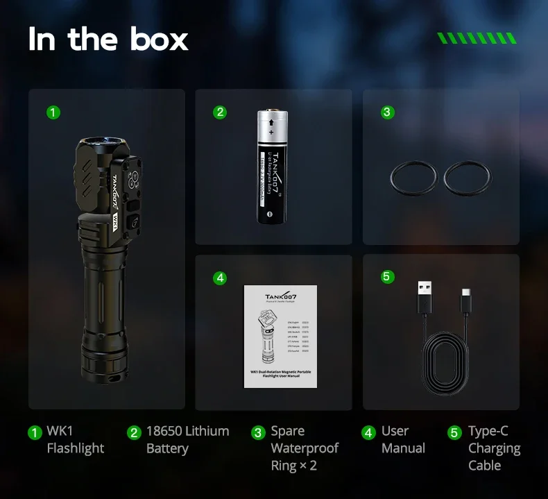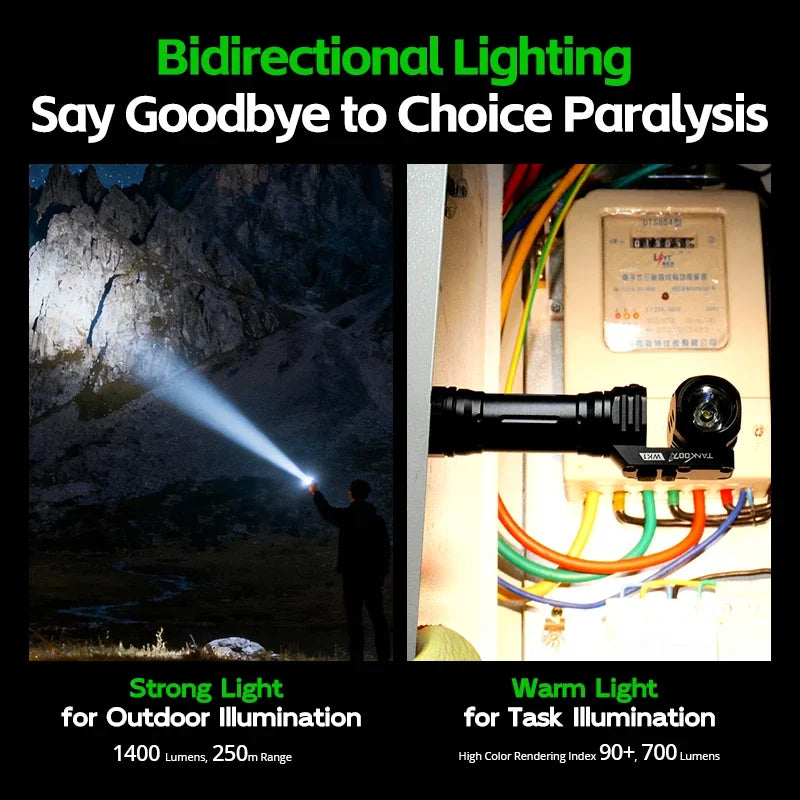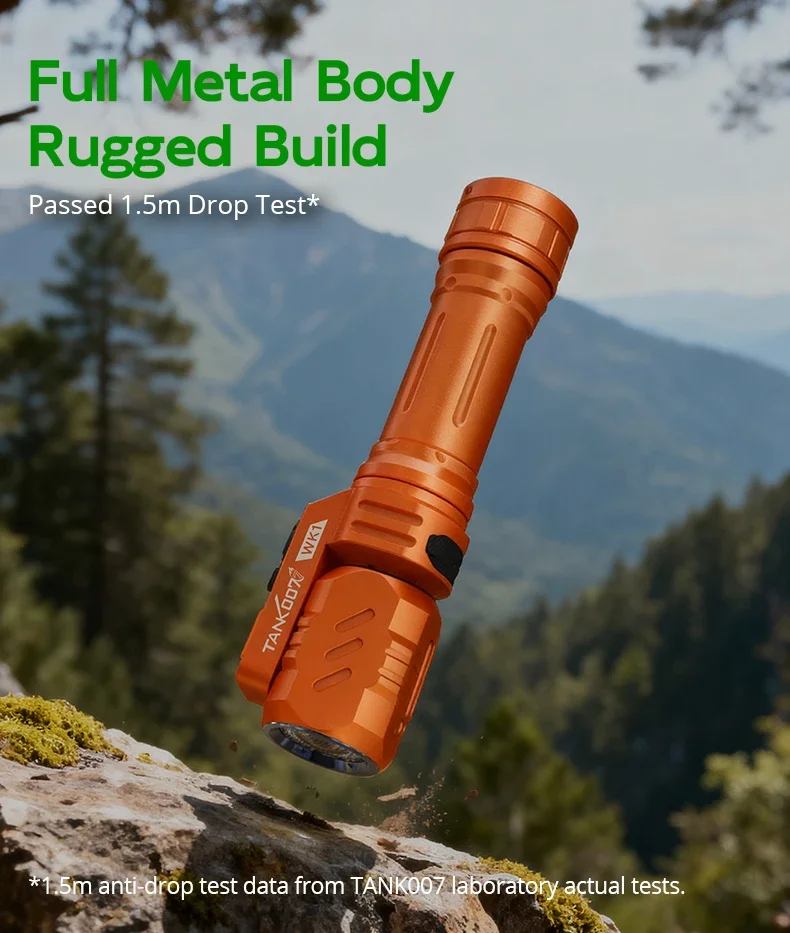Tank007 WK1 Bidirectional Rotation Flashlight 1400 Lumen Rechargeable LED Torch 18650