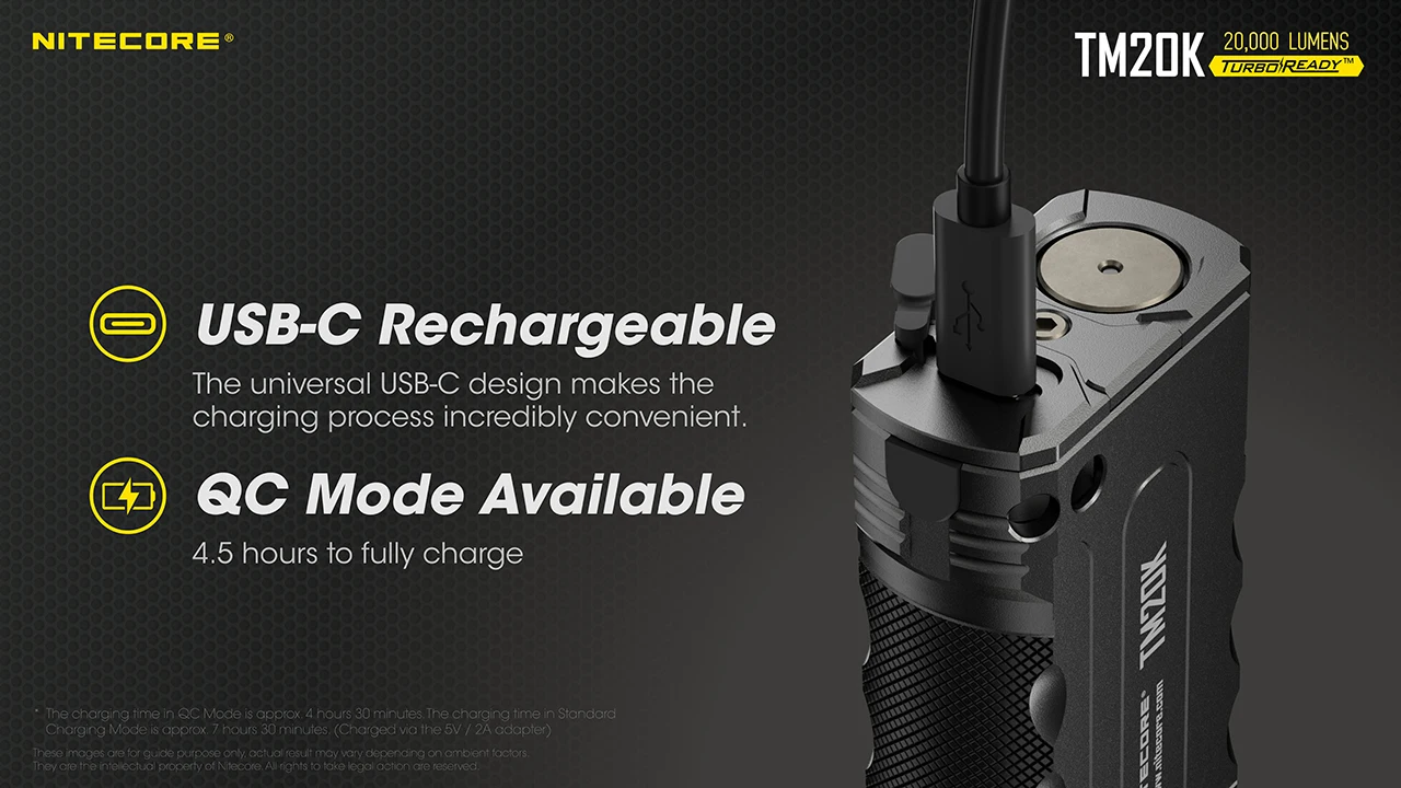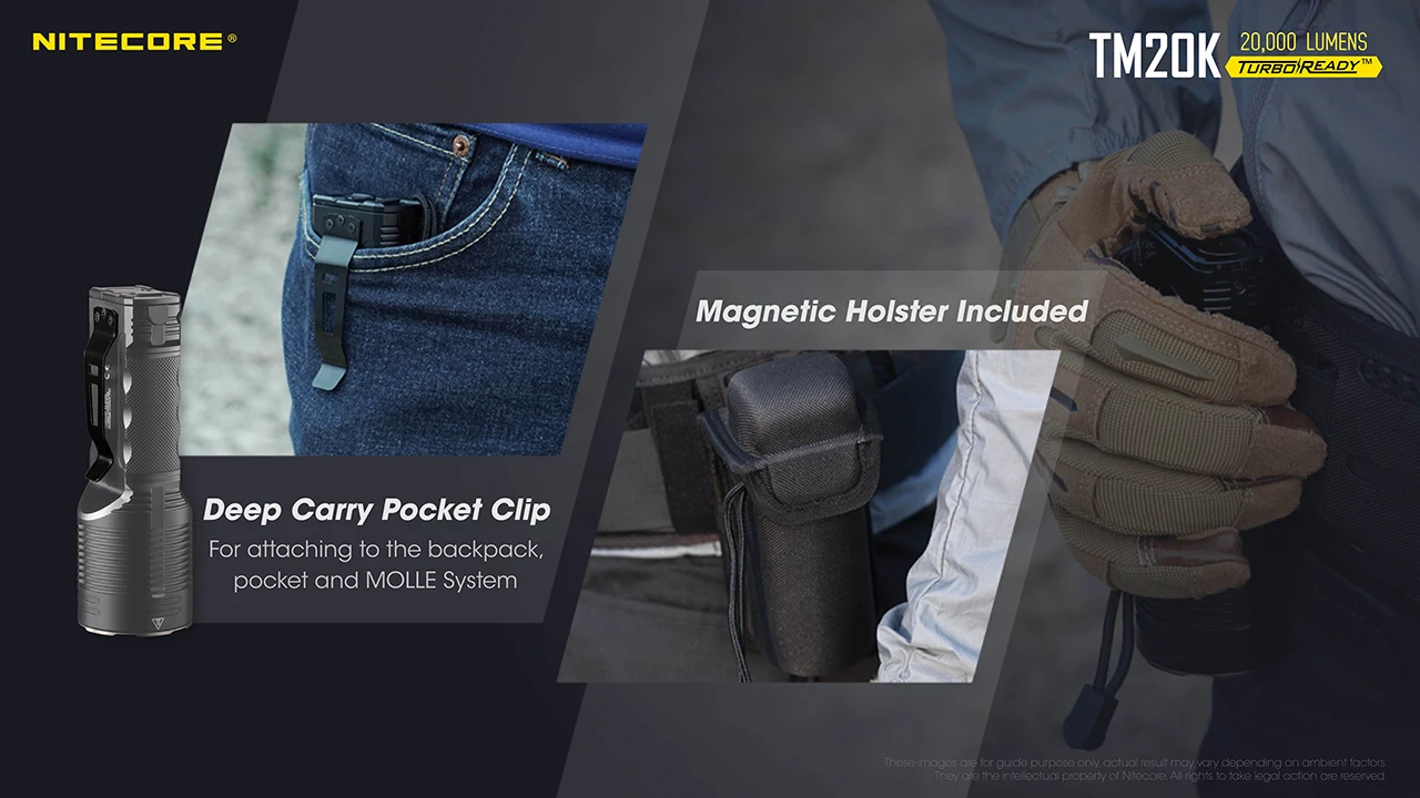 Package includes : 1 x Nitecore TM20K , 1 x USB-C Charging Cable ,1 x Lanyard,1 x Holster