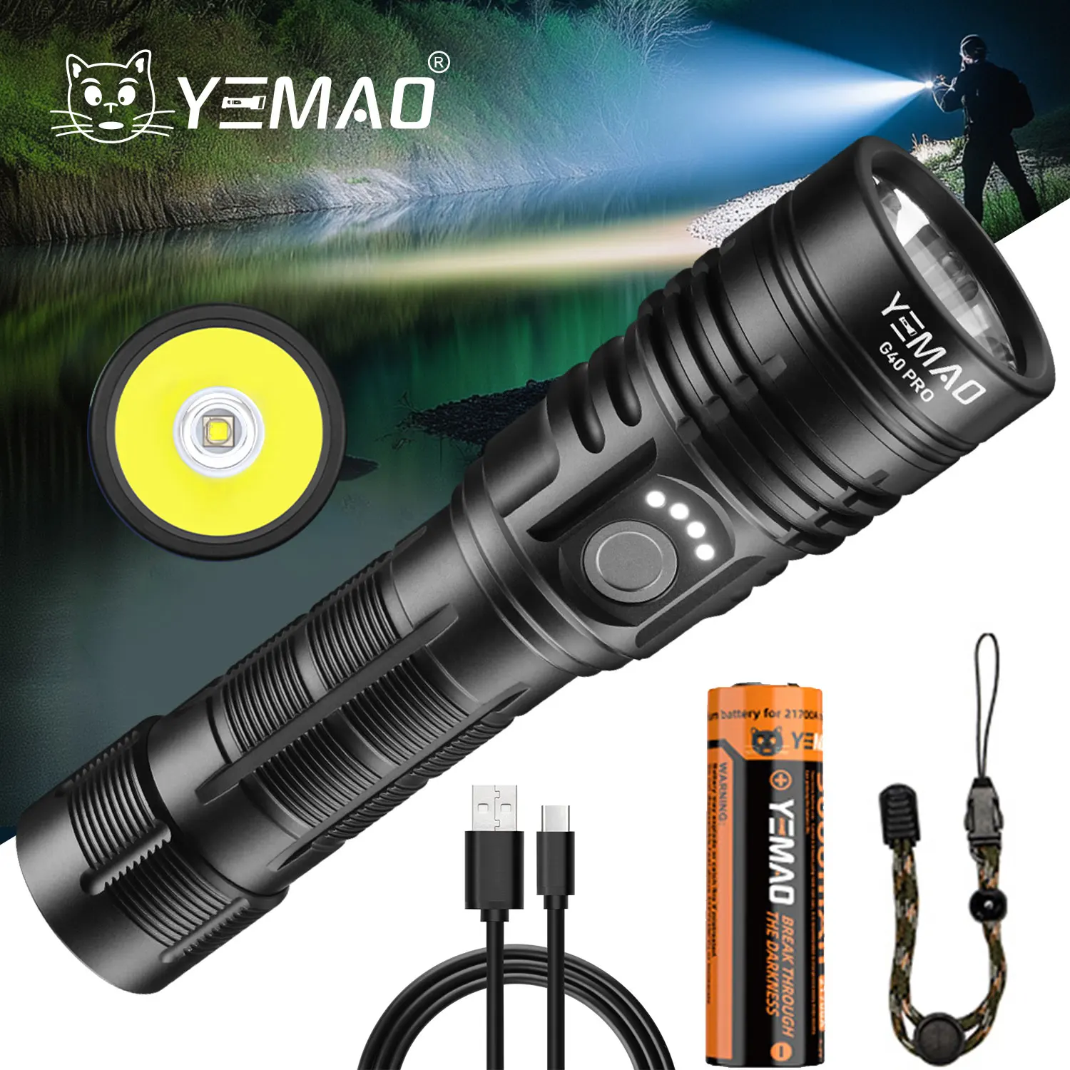 Portable Flashlight, 1100 Lumens USB Rechargeable Tactical Flashlight, Flashlight IPX4 Waterproof Led COB Work Light for Camping