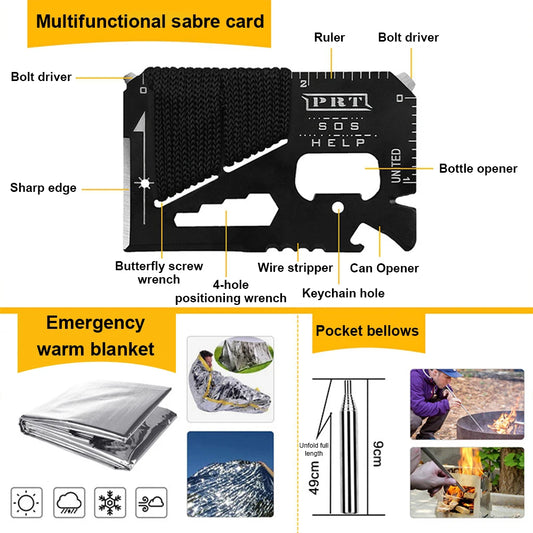 Outdoor Survival Kit 60 in 1 First Aid Gear Professional Emergency Survival Gear Equipment Tools Set For Camping Adventures Tool