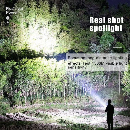 100000 Lumen Super Bright Spotlight Long Range LED Flashlight Built-in Battery USB Charging Waterproof Portable Camping Torch